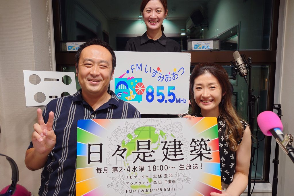 『日々是建築』は,毎月第2・4水曜の18:00〜18:55,FMいずみおおつ(85.5MHz)スタジオから生放送でお届け.(提供:健康生活KSB)