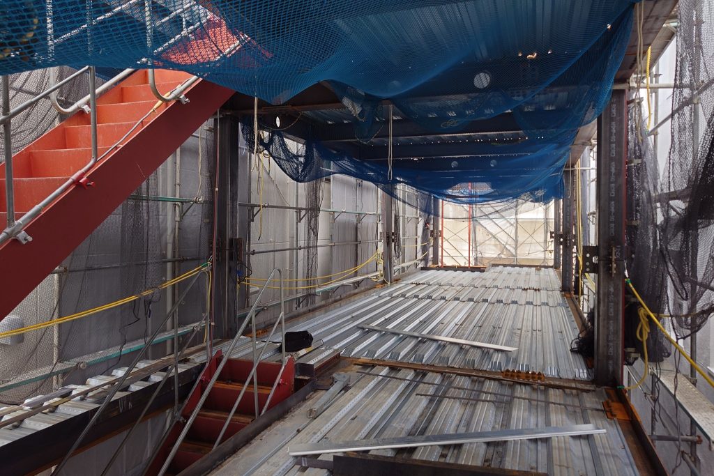 2025.10.22七条烏丸松屋ビル 鳶工事進行中